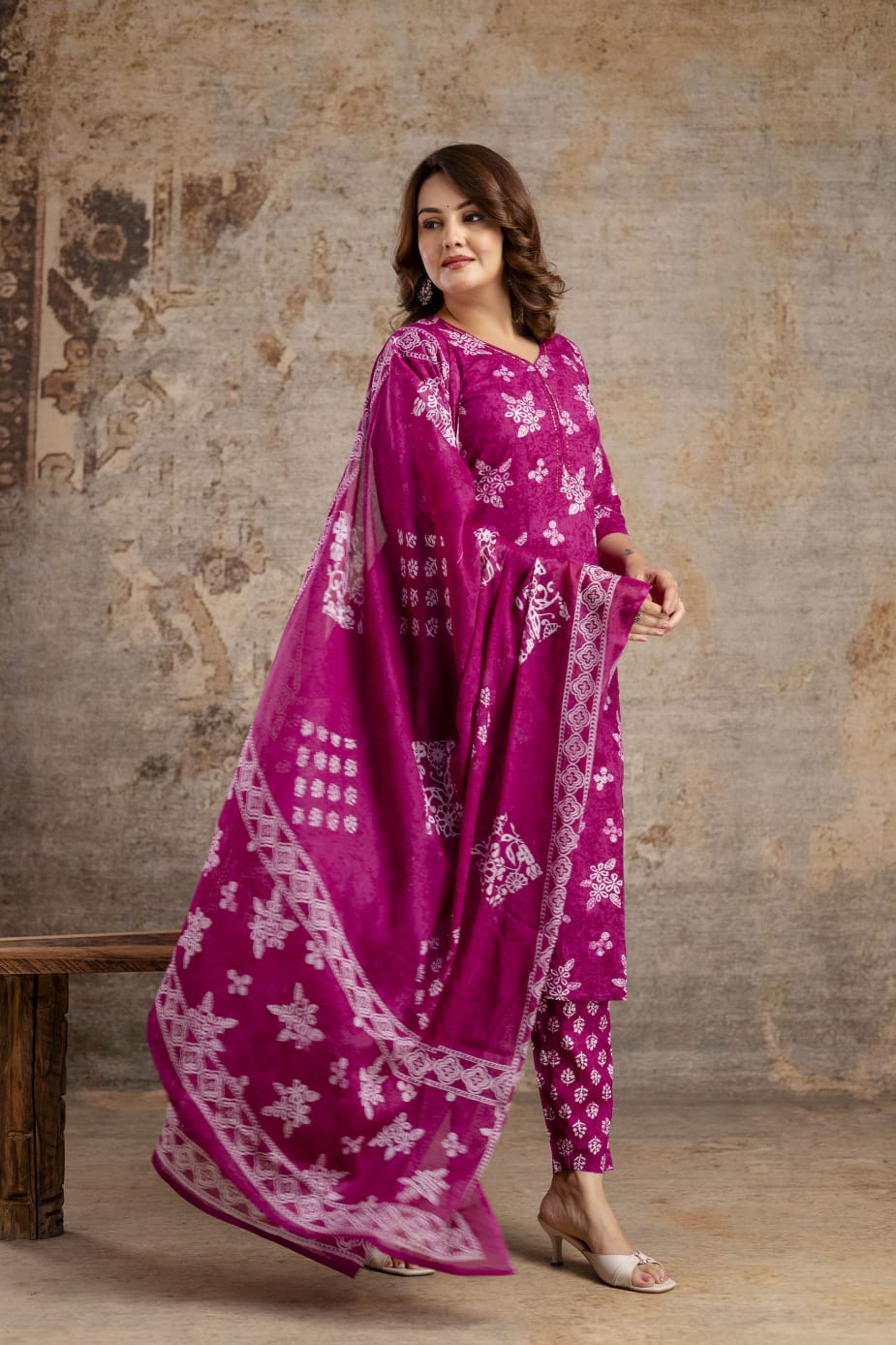 Dupatta : Completing the look is a generous matching cotton dupatta with a detailed printed border, designed to drape beautifully.
