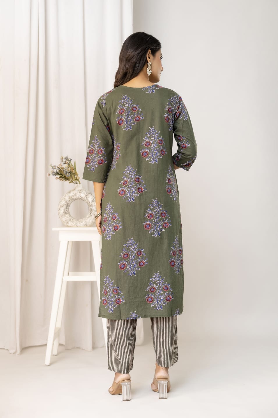 Pant : It is perfectly matched with complementary printed ankle-length trousers